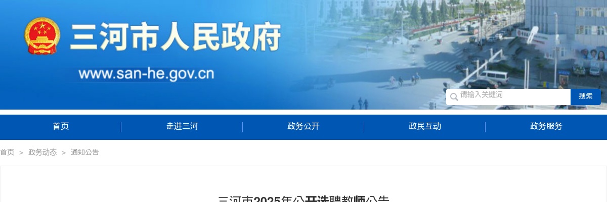 11月19日,在三河市人民政府门户网站面向社会发布选聘公告。