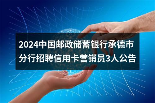 【2024中国邮政储蓄银行承德市分行招聘信用卡营销员3人公告】相关岗位: