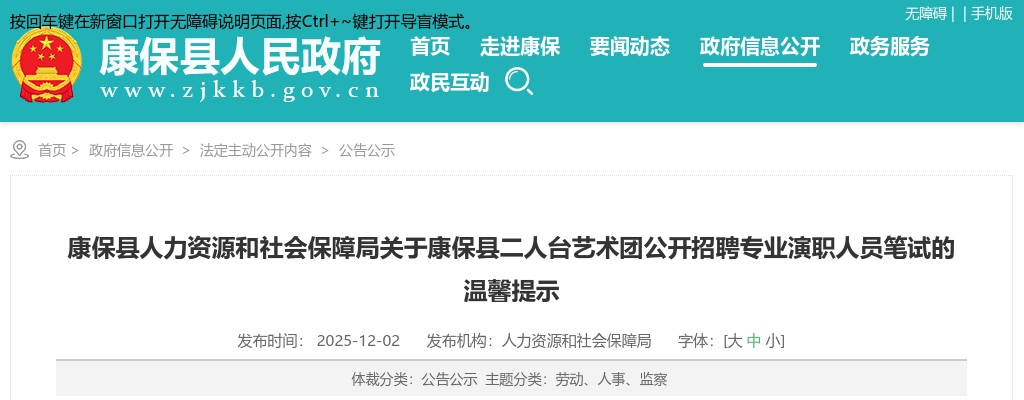 原标题:康保县人力资源和社会保障局关于康保县二人台艺术团公开招聘专业演职人员笔试的温馨提示