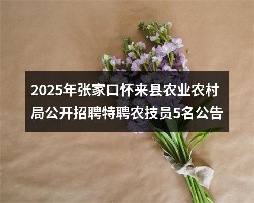 【2025年张家口怀来县农业农村局公开招聘特聘农技员5名公告】相关岗位: